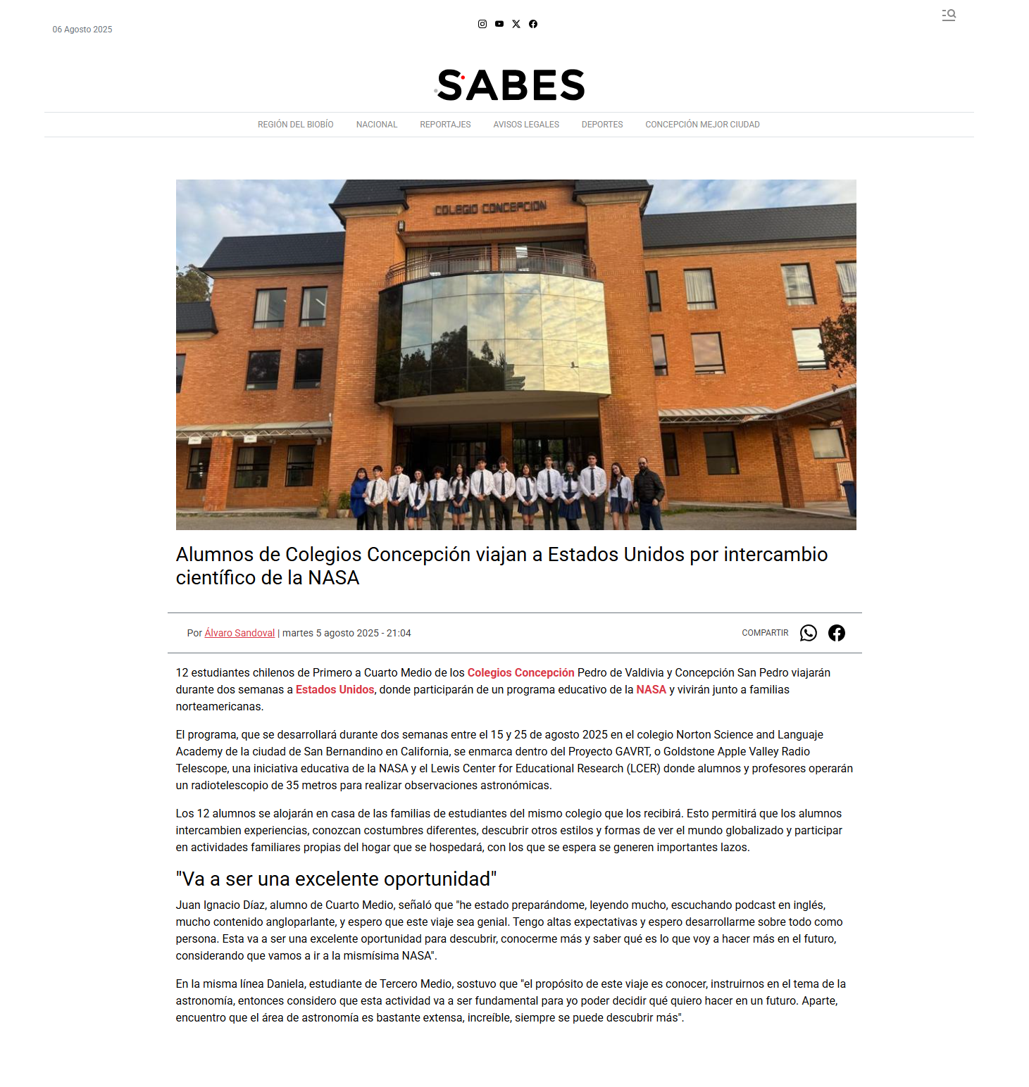 Inicio Prensa Alumnos de Colegios Concepción viajan a Estados Unidos por intercambio científico de la NASA