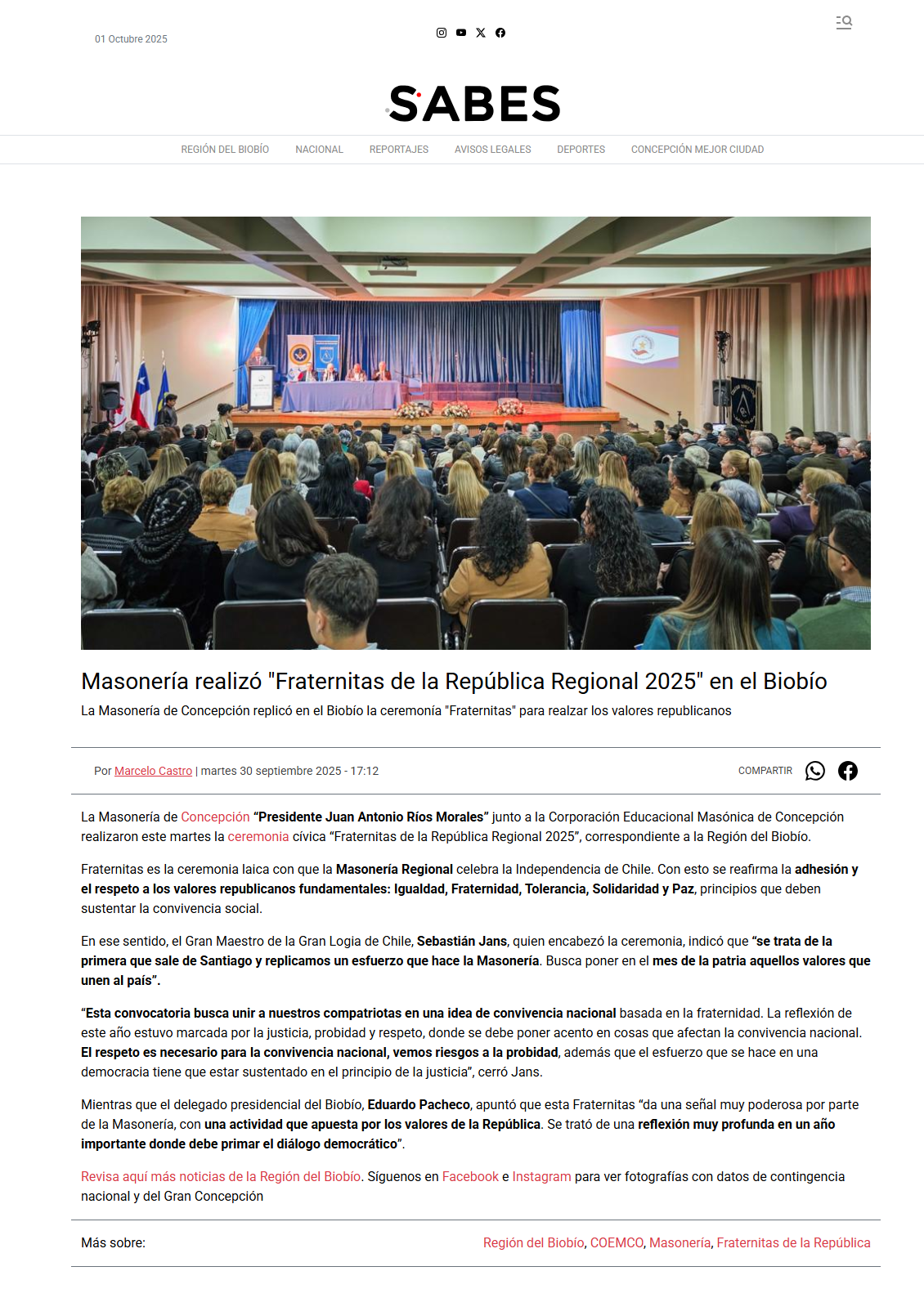 Inicio Prensa Masonería realizó «Fraternitas de la República Regional 2025» en el Biobío