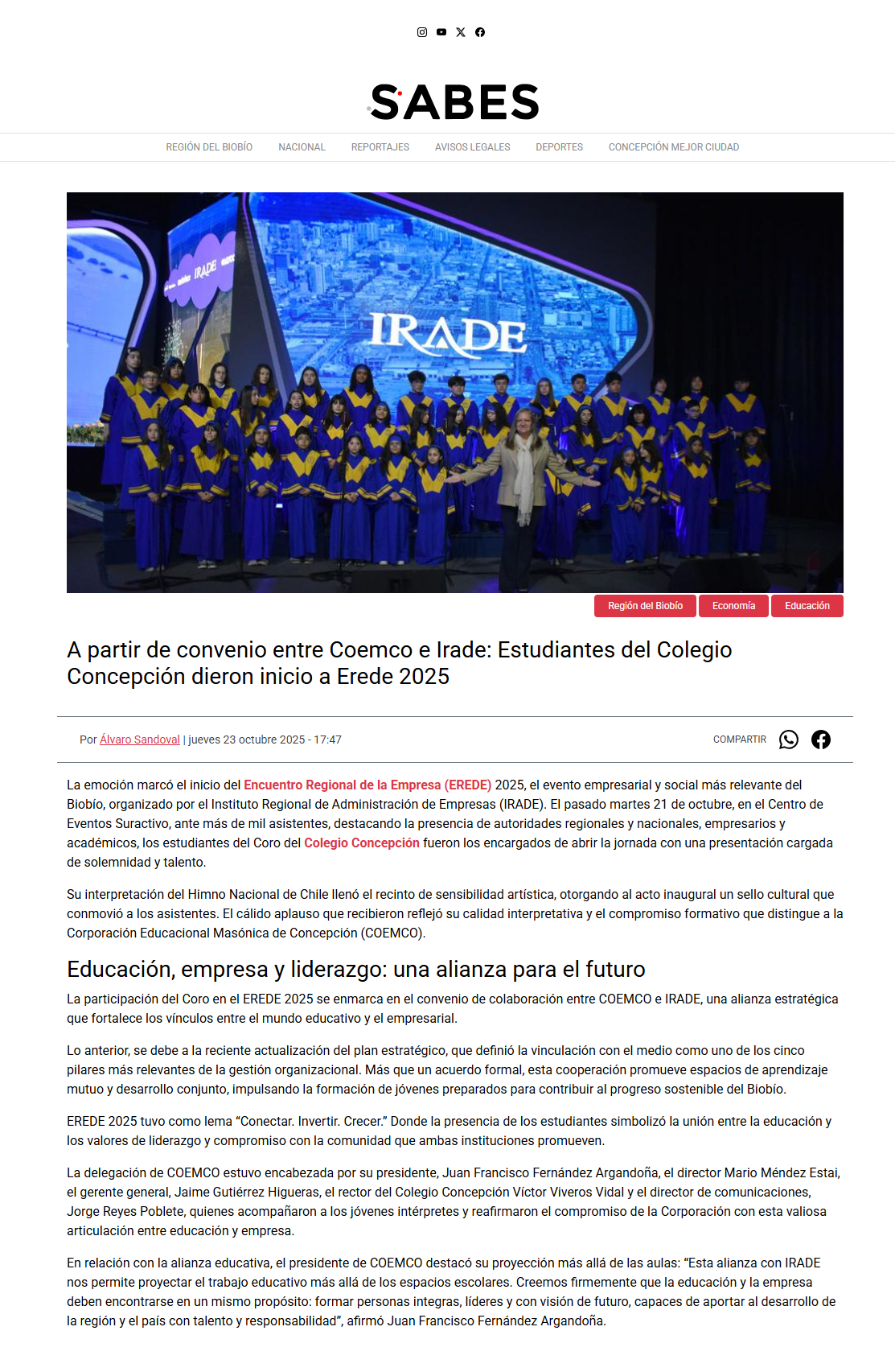 Inicio Prensa A partir de convenio entre Coemco e Irade: Estudiantes del Colegio Concepción dieron inicio a Erede 2025