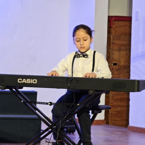 La ceremonia culminó con una presentación del coro del colegio, dirigido por el profesor de música Mauricio Santos Mazzini, quienes interpretaron el Himno Nacional y la pieza coral “Agua de Beber” de Jobim y De Moraes. Previamente, el estudiante Matías Muñoz Sanhueza (3º Básico B) deleitó a la audiencia con piezas musicales interpretadas en teclado.